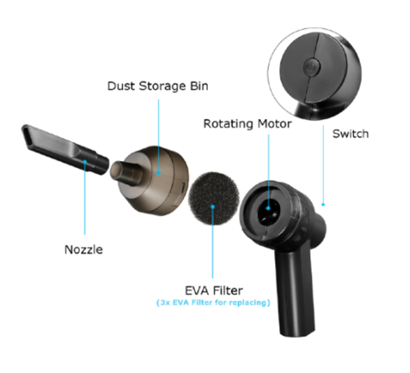 Powerful Suction: Rechargeable vacuum cleaner with 2000mAh Li-battery provides powerful suction, cleaning dust, hairs, crumbs, scraps for , mechanical keyboard, piano, makeup bag, car, pet house;