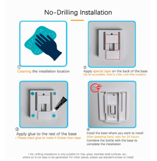 3: Separate the base of product from the Bottle body, align the base with the drilling position, insert two screws into its holes, and then tighten the screws